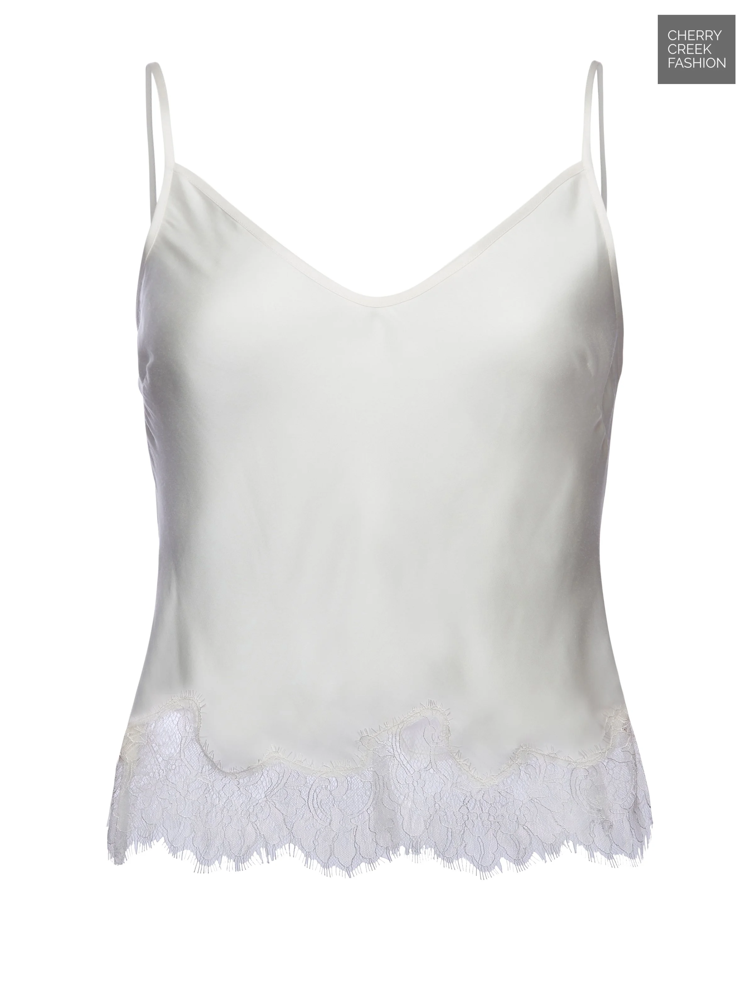 The L'agence Dayna Lace Cami is a wardrobe staple that should be in every woman's closet. Vintage-inspired scalloped lace trims the flattering scoop neck and hem. The charming design is slightly fitted through the waist to enhance hourglass definition and includes adjustable spaghetti straps. Perfect on its own, it also makes a beautiful base layering piece for any outfit.